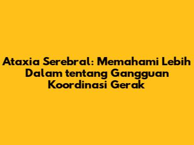 Ataxia serebral adalah istilah medis yang merujuk pada gangguan neurologis yang memengaruhi koordinasi gerakan tubuh. Kata "ataxia" sendiri berasal dari bahasa Yunani yang berarti "tanpa urutan" atau "kekacauan", yang secara tepat menggambarkan dampak dari kondisi ini pada kemampuan seseorang untuk mengendalikan gerakan mereka. Ataxia serebral dapat disebabkan oleh berbagai faktor, mulai dari kerusakan pada otak, sumsum tulang belakang, hingga masalah pada sistem saraf perifer. Dalam artikel ini, kita akan menjelajahi secara mendalam tentang ataxia serebral, meliputi penyebab, gejala, diagnosis, dan pilihan pengobatan yang tersedia.