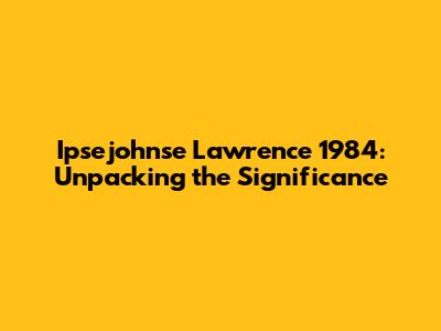 Ipsejohnse Lawrence 1984: Unpacking The Significance