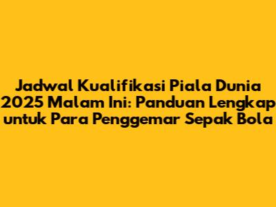 Hai, para penggemar sepak bola! Siapa di sini yang sudah nggak sabar menantikan kualifikasi Piala Dunia 2025? Pastinya, kan? Nah, buat kalian yang pengen terus update tentang jadwal pertandingan, jangan khawatir. Artikel ini bakal jadi panduan lengkap buat kalian semua. Kita akan bahas jadwal kualifikasi Piala Dunia 2025 malam ini, lengkap dengan informasi penting lainnya. Jadi, siap-siap catat jadwalnya, ya!